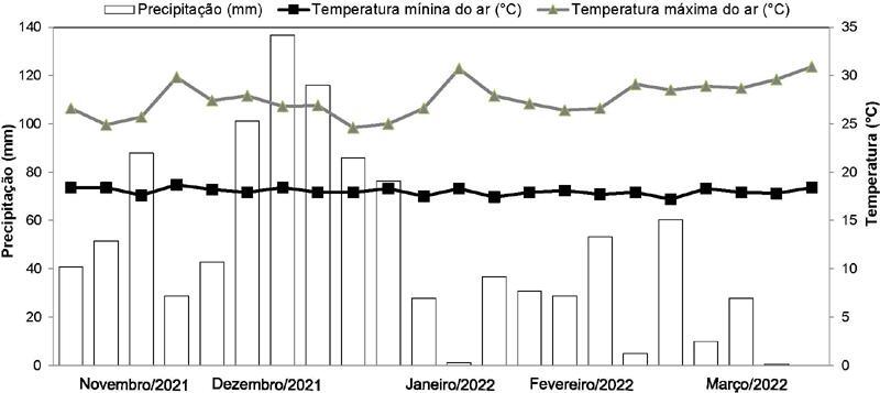 Dois experimentos foram desenvolvidos em área de produção comercial de soja em Planaltina, DF, um de controle e outro de seletividade, no qual os escapes de plantas daninhas ao controle químico foram removidos. O delineamento experimental foi o de blocos ao acaso, com 10 tratamentos de herbicidas, duas testemunhas (capinada e infestada) no experimento de controle e apenas uma (a capinada) no experimento de seletividade, com quatro repetições. Os tratamentos de herbicidas foram pulverizados um dia após a semeadura da soja (cultivar Brasmax Desafio RR 8473 RSF).