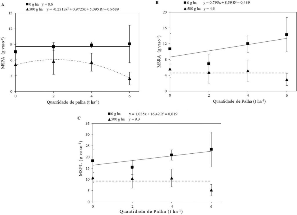 este resultado mostrou que a cobertura proporcionada pelo material vegetal também influenciou na seletividade do herbicida fomesafen.